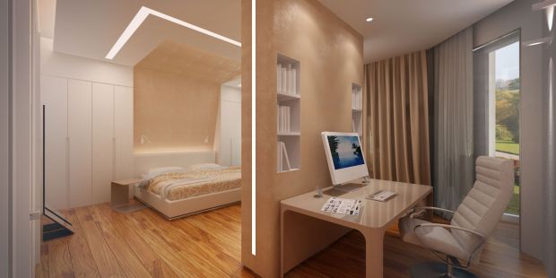 Это минимальный "джентльменский набор". Более комфортный вариант – дополнение спальни мини-территорией с учетом личных увлечений: для кого-то это уголок с тренажерами, для других – личная библиотека. Что касается размещения компьютера, то здесь это крайне редкое явление. Предпочтение отдается обычно мобильному ноутбуку, которым можно пользоваться где угодно.