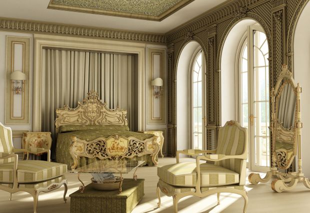 Планировка комнаты спальни в элитном интерьере такой подход отвергает в принципе: она должна быть просторной для комфортного передвижения и достаточной для воплощения декоративных решений.