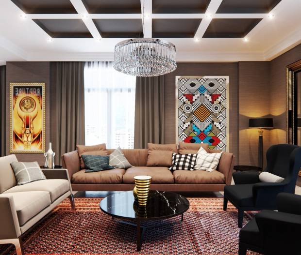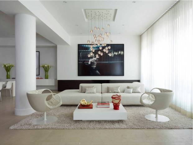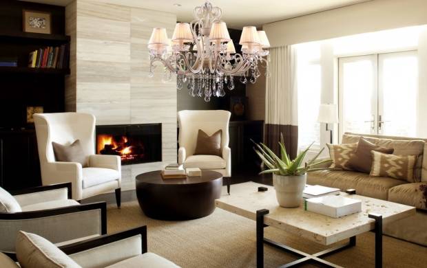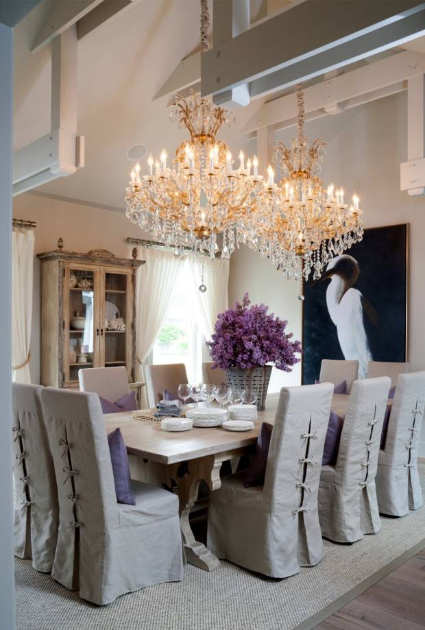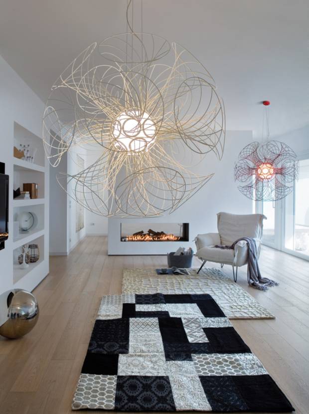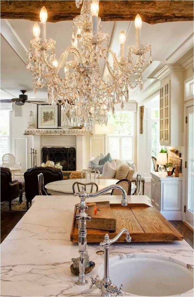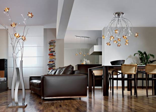 Для этого можно подвесить к потолку несколько люстр. Особенно такое решение целесообразно в кухне-столовой, гостиной-столовой, квартире-студии и там, где объединено несколько помещений.