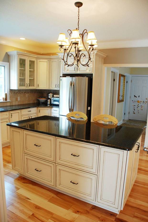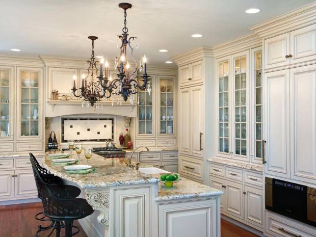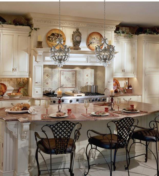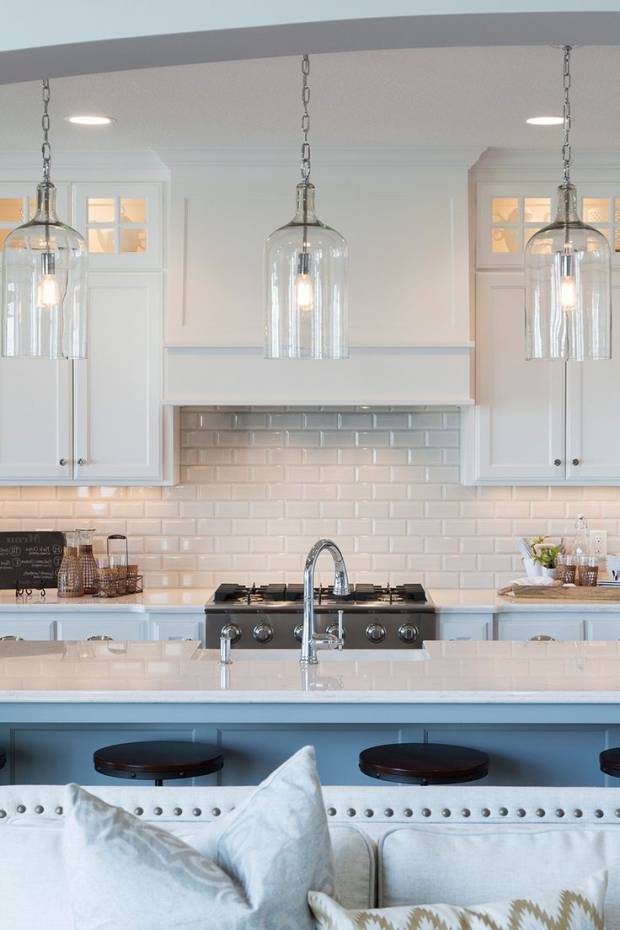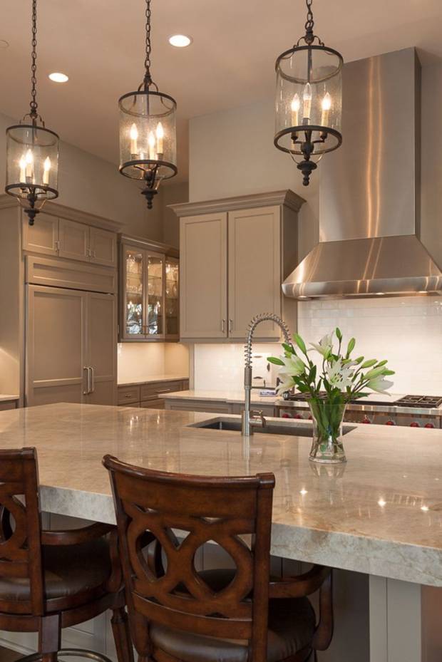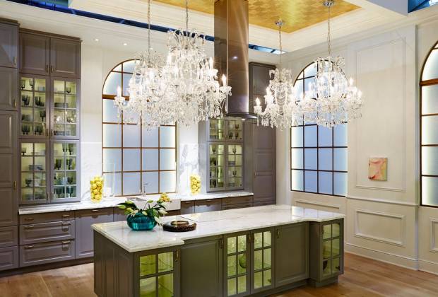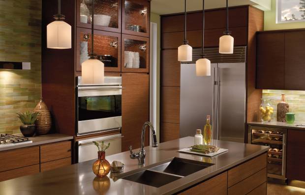 - Нередко на кухне устанавливают несколько люстр – в зоне приготовления пищи и в зоне обеденного стола.