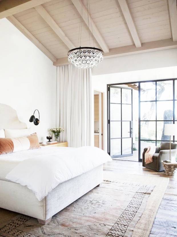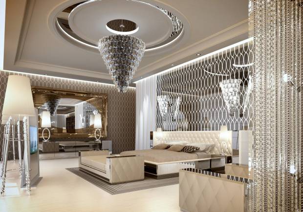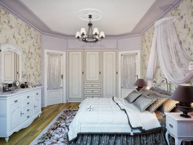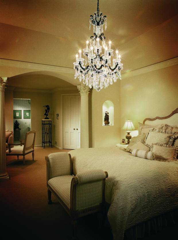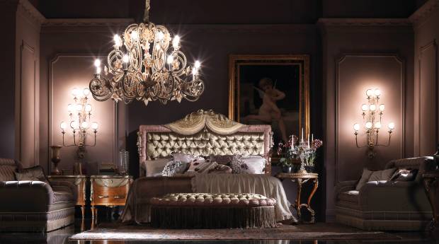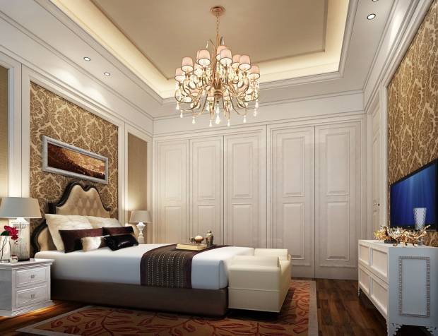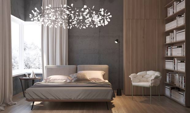 Свет должен мягко рассеиваться, быть умеренно ярким и давать возможность не только отдыхать, но и читать книги, наносить макияж, подбирать гардероб. Нередко в спальнях монтируют люстры с регулируемой яркостью.