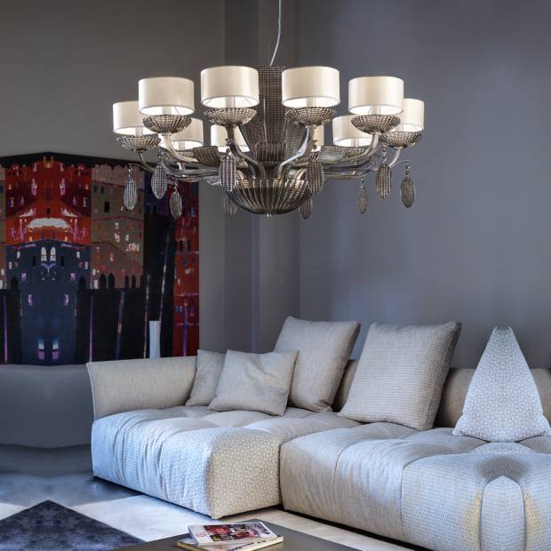 Каркас чаще всего из металла либо бронзы. Выбирать потолочную люстру такого типа лучше всего для гостиной и столовой.