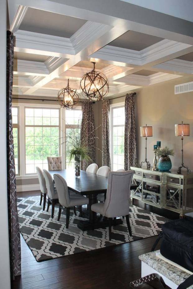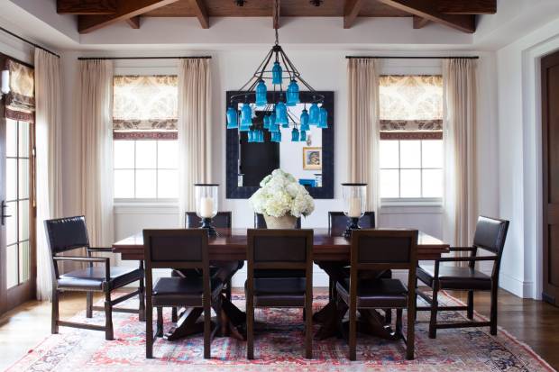 - Над обеденным столом можно установить группу подвесных ламп небольшого размера.