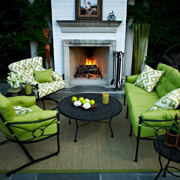 Используя один и тот же гарнитур кованой мебели, вы можете использовать подушки и текстильные чехлы разных цветов, фактур и стилей, тем самым малыми тратами обновлять облик вашего сада.