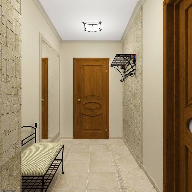 Квартиры типовых застроек, как правило, не предусматривают больших прихожих и просторных коридоров. Но для тех, кто любит получать максимум пользы из минимума ресурсов, эти комнаты могут стать дополнительным арт-объектом. Разместив на стенах резные полки или даже кованые панно, вы оживите коридорное пространство.