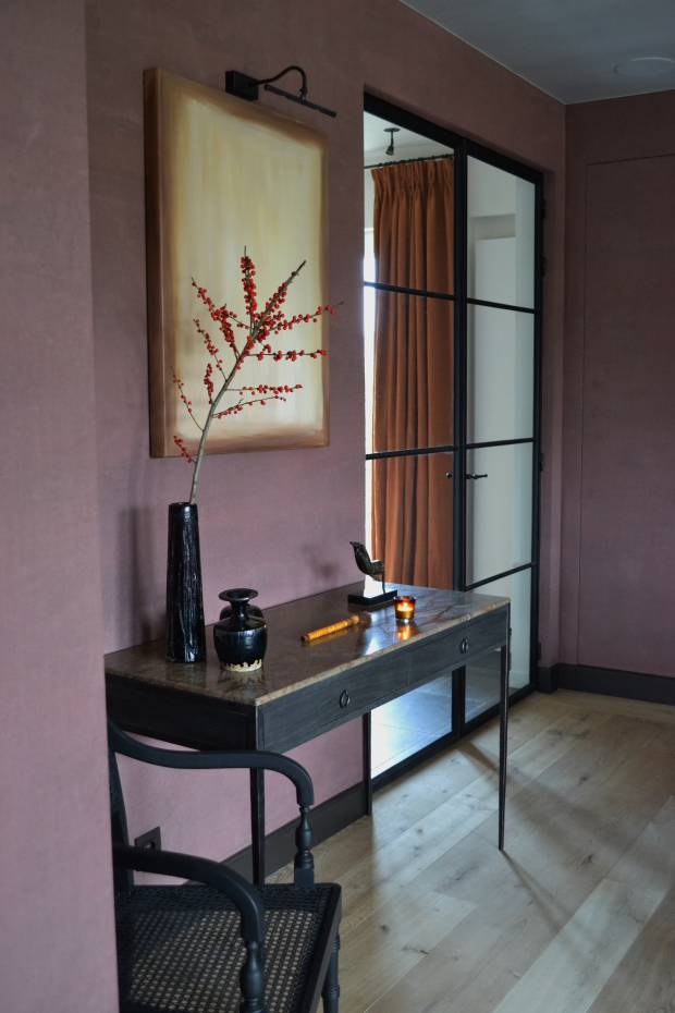 Стильный и универсальный прием – игра на контрастах – легко реализуется с помощью внедрения тяжелых кованых деталей из темного металла в нежную пастельную палитру.