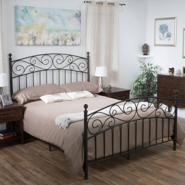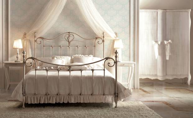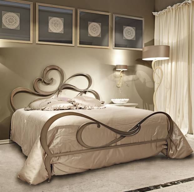 Кровать с ковкой в интерьере спальни всегда выглядит выигрышно и презентабельно. Кроме того, такая мебель не будет съедать пространство: кованая кровать в интерьере спальни будет визуально растворяться, не будет смотреться громоздко и тяжело.
