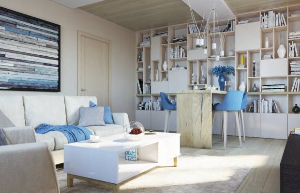 Он, как и рассматриваемое направление, предусматривает простоту, лаконичность и наличие функциональной мебели.