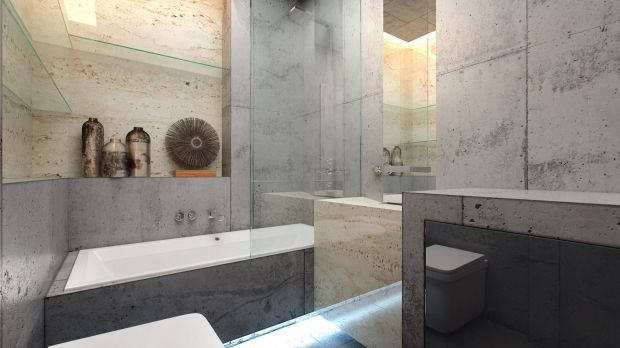 - Современному интерьеру ванной комнаты присуща универсальность. В эксклюзивном дизайне одинаково роскошно и модно смотрится как отдельно стоящая купель самой простой формы, например, из бетона, так и минималистичный душевой угол в виде стеклянной перегородки и сливного отверстия в полу.