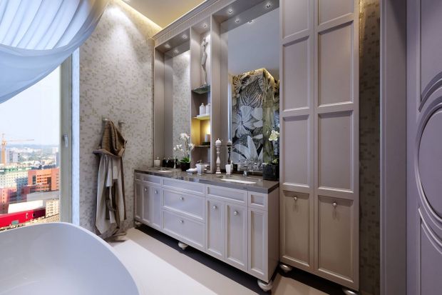 - Техническое оборудование (стиральную, сушильную машины) принято скрывать за мебельными фасадами, чтобы избежать эффекта загромождения. Вертикальное расположение техники сэкономит площадь. Аксессуары же для водных процедур, наоборот, лучше оставить на виду – в роли декора.