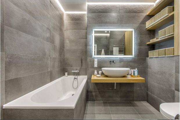 Чем больше в санузле матовых поверхностей, тем насыщеннее должен быть свет. |
