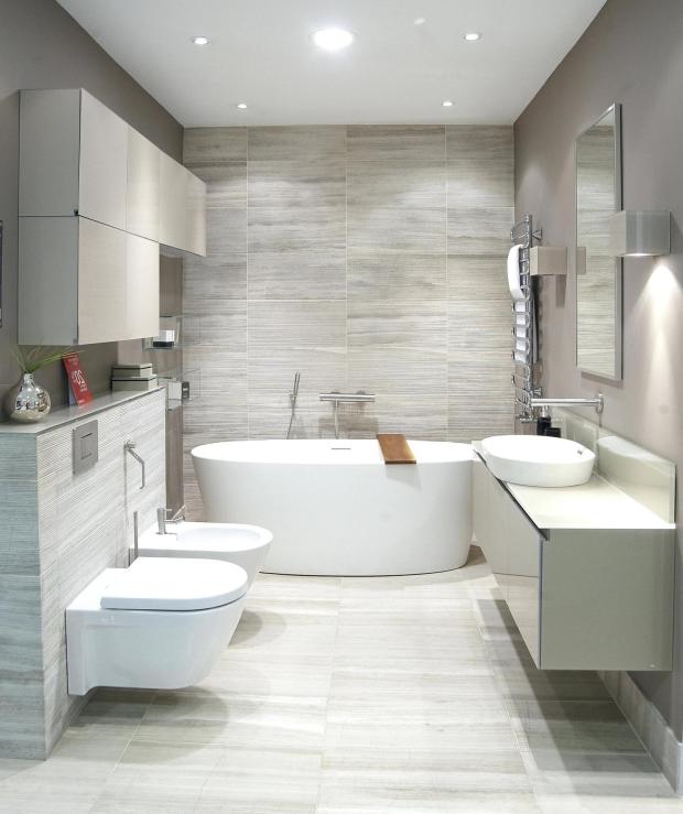 Используются: подвесные шкафы и тумбы, раковины в виде круглых, овальных, прямоугольных чаш, однорычажные смесители, встроенные и подвесные модели унитазов. В большой по площади комнате размещают одновременно и купель, и душевой угол. |