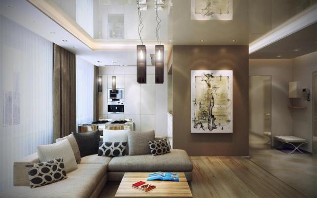 В вопросе планировочных и декораторских решений стиль отличается универсальностью, поэтому подходит для оформления гостиной любой площади. Даже компактное пространство можно сделать комфортным и функциональным благодаря ясным линиям, аккуратной работе с композицией и оттенками.