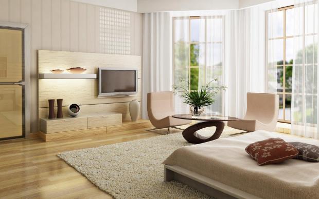 - Минимальный набор мебели для гостиной – диван, кресла, журнальный стол, шкаф-купе или модульная система на ширину стены.