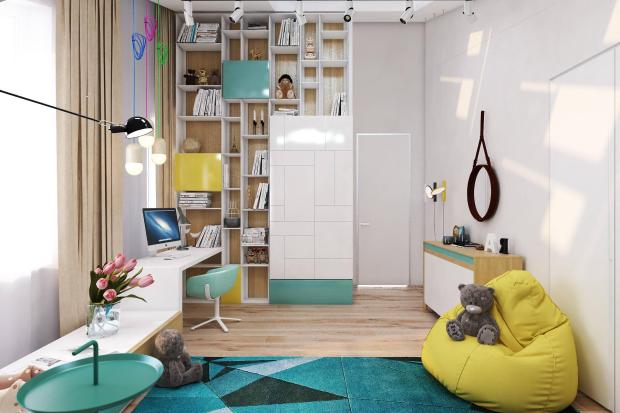 А вот комната для девочки-подростка из проекта уютной квартиры на Чистых Прудах получила более красочное исполнение.