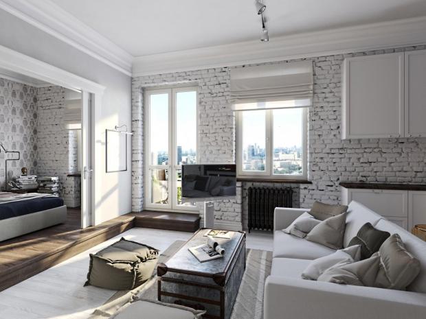 Индустриальный вид оштукатуренных стен и кирпичной кладки – тоже интерьерный тренд на будущий год. Это отличная новость для тех, кто хочет сэкономить время и деньги на ремонте.