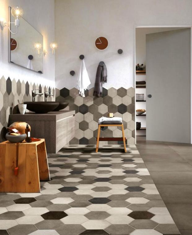 Рисунок и формы в виде пчелиных сот – явная тенденция дизайна в минималистском стиле. Этот орнамент присутствует в напольной и настенной плитке, узорах ковра и обоев, в конструкции абажуров.