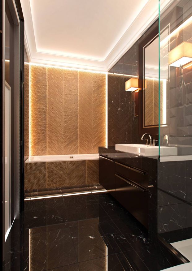 Главная зона внимания – свет в районе зеркала, он должен быть достаточно ярким, но не слепящим.