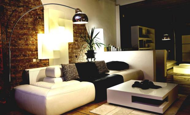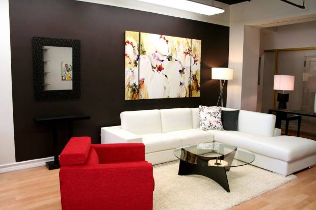 В плане декора одно яркое пятно в виде крупной картины-абстракции или однотонного скульптурного ковра с разноуровневым ворсом будет очень кстати. Но прежде чем подбирать другие варианты, посоветуйтесь с декоратором из салона современного искусства.