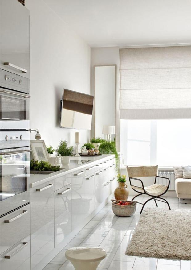Пуристическая обстановка близкая к минимализму и хай-теку. Она лаконичная и в то же время от нее веет шармом.