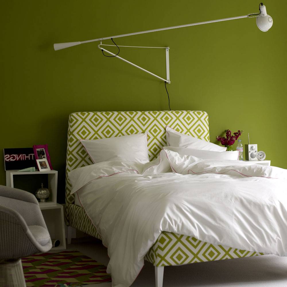 Спальня в зеленых цветах ассоциируется с природой. Она обаяет ощущением свежести, будет способствовать расслаблению и снятию усталости. Это один из самых выигрышных цветов для этого помещения. Спальню в зеленом цвете рекомендуют людям, которые любят природу и устают от городской суеты. Можно сочетать зеленый с другими природными расцветками, чтобы усилить ассоциации с флорой: коричневый, пастельная гамма, другие оттенки зеленого, оранжевый.
