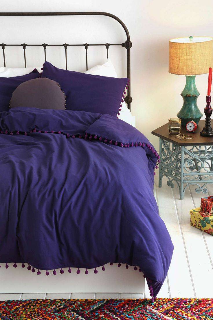 Важно с фиолетовым не переусердствовать, так как его насыщенность будет мешать отдыху, наполняя излишней энергией. В спальне фиолетовый сочетают с серым, белым, зеленым, сиреневым.