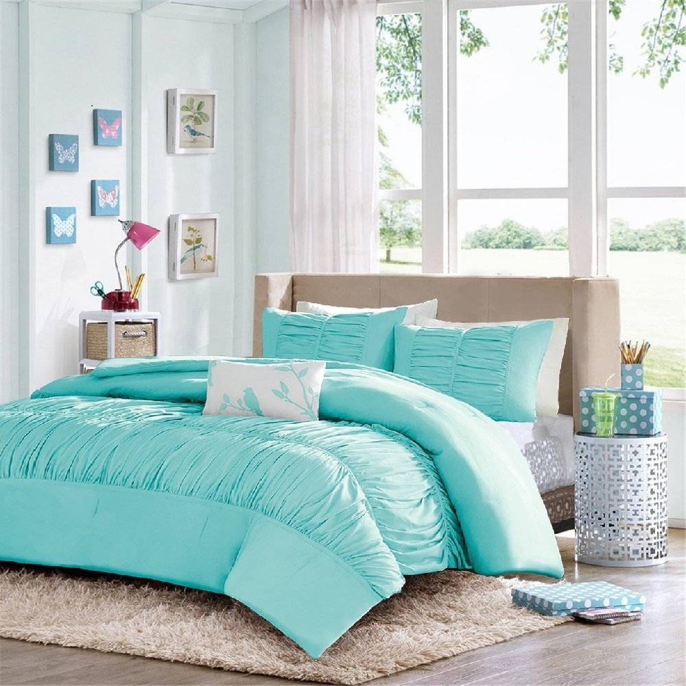 Спальня в бирюзовых цветах обаяет свежестью и дарит чувство бодрости. Выбирайте тон умеренной насыщенности, так как ярко-бирюзовый может мешать расслабиться и отдохнуть. Яркие тона сделают в спальне желаемые акценты (цвет мебели в спальне, декоративные подушки, шторы, покрывало и т. д.).