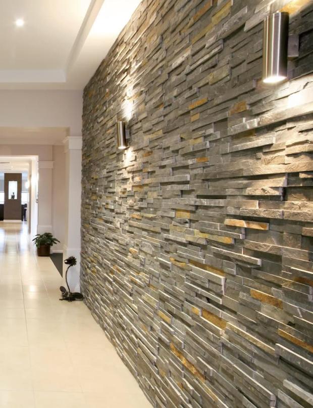 Искусственный камень в прихожей разделяется по фактуре на несколько типов: