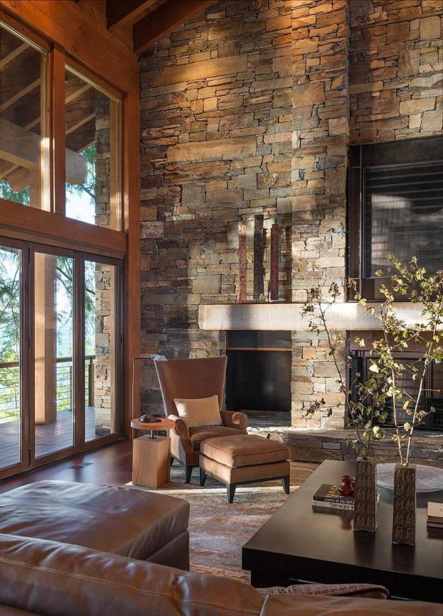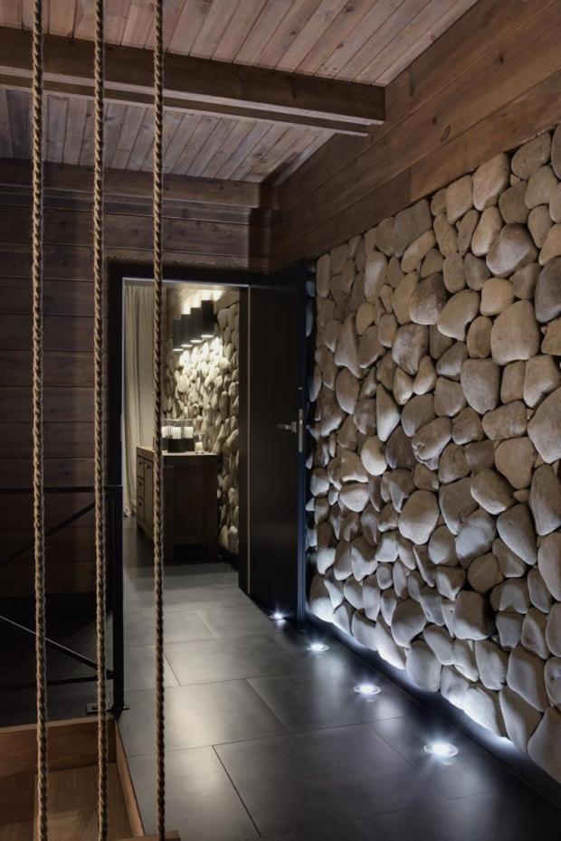 Фактура крупного булыжника будет удачно смотреться в стиле "шале", отсылая нас к русским традициям охотничьих домиков и уютных усадеб.