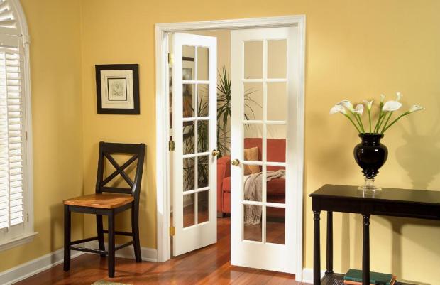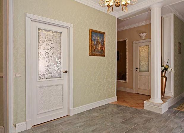 В классический интерьер квартиры хорошо впишутся широкие деревянные межкомнатные двери, с зеркальными или стеклянными вставками: распашные двойные, "книжки", раздвижные. В современные интерьеры больше подойдут шпонированные, прозрачные конструкции на роликовых системах.