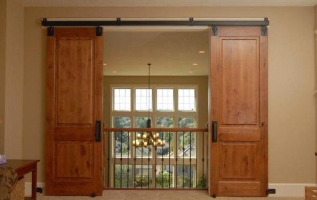 Благодаря роликовому механизму двери в широких проемах рационально используют полезную площадь, для небольших помещений это выгодный вариант. Деревянные, стеклянные, композитные полотна органично смотрятся в современных и классических квартирах, в просторных помещениях играют роль перегородок для зонирования.