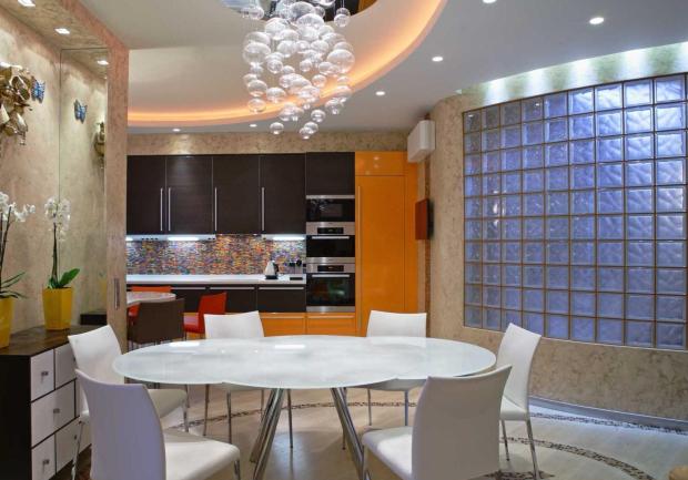 Стеклоблоки в интерьере квартиры впишутся в любую цветовую гамму. Фактура поверхности может быть светорассеивающей, светонаправляющей и светопрозрачной. Можно комбинировать блоки друг с другом в зависимости от назначения помещений.