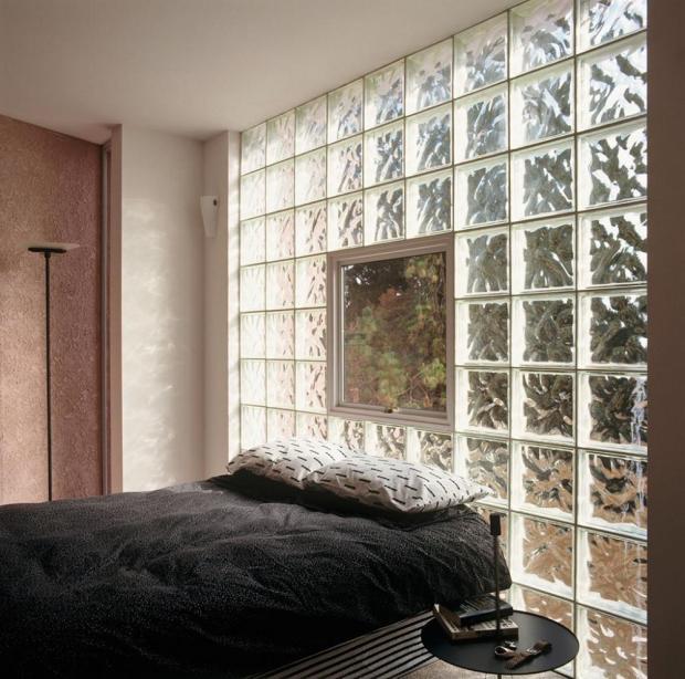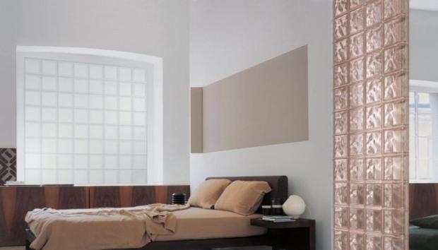 Чтобы применить стеклоблоки в качестве перегородки в жилой комнате, используйте блоки с направляющими или прозрачными свойствами. Такой прием не затемнит отгороженную площадь.