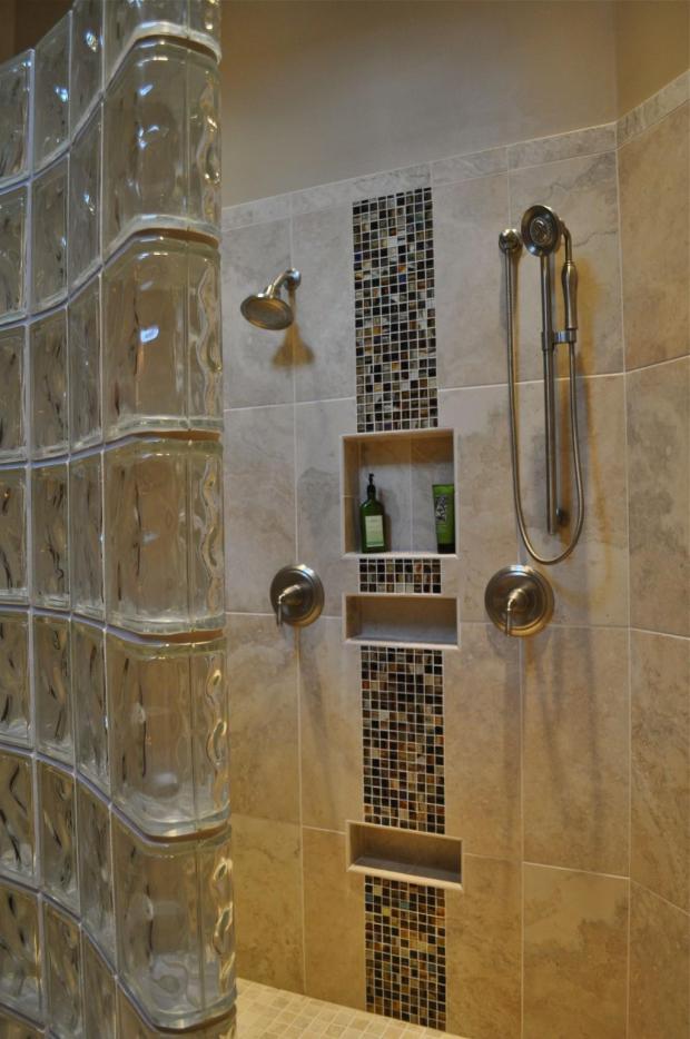 Такой материал негорюч, не боится влаги, поэтому может использоваться при отделке бань, бассейнов, ванных комнат. Блоки выдерживают резкие перепады температур, отлично изолируют звук и сохраняют тепло, а душевая кабина всегда будет освещена общим рассеянным светом.