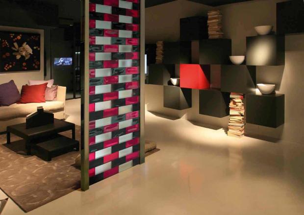 Стеклоблоки в квартире используются вместо гипсокартоновых перегородок для зонирования помещения. Стена из стеклоблоков не дробит большую комнату на несколько маленьких чуланов. Благодаря прозрачности конструкции, пространство воспринимается более цельным.