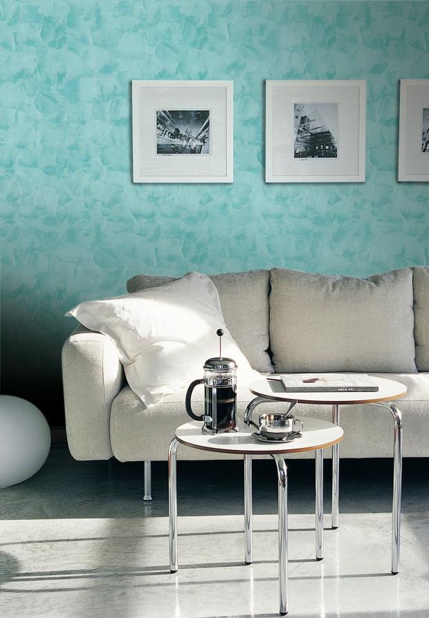Внешне напоминает травертин. Может содержать в себе полупрозрачные слои разных цветов, что дает переливы и игру света на поверхности стены. Чаще всего применяется в интерьерах барокко, итальянской классики и в стиле винтаж.