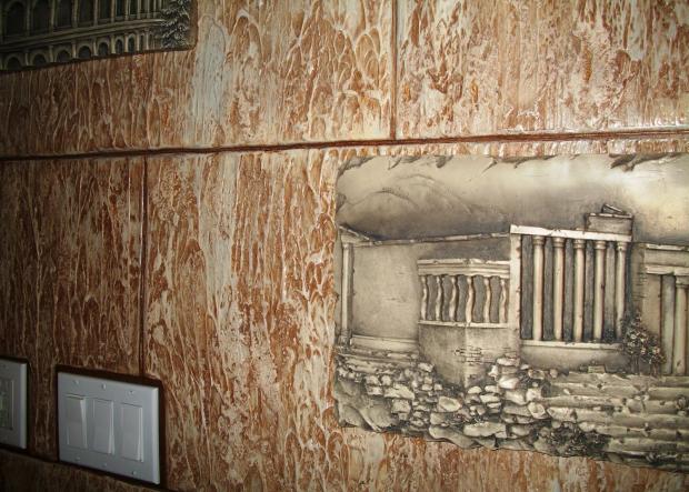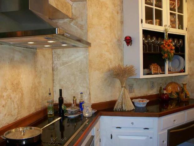 В качественном исполнении венецианская штукатурка имитирует природный камень – гранит, малахит, оникс, яшму. При стандартном способе нанесения каждый слой растягивается как можно тоньше, выравнивается и прессуется, поверх него наносится следующий. Многослойный "пирог" штукатурки создает красивый рельеф натурального камня. Бесшовная технология работ делает "венецианку" украшением стены любой площади и формы.