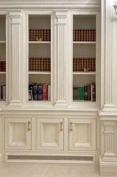 Это классика интерьерного дизайна, насыщенная деревом и текстилем обстановка с характерными чертами. Стены отделывают деревянными панелями и тканью или дорогими обоями с вертикальными полосами, цветочными мотивами. Потолок украшают лепниной. Для пола в дизайне кабинета используют паркет, мрамор, доску из массива, натуральные камень или же керамогранит, искусно имитирующий эти фактуры.