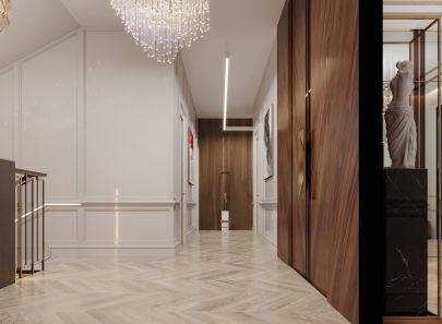 В рамках ремонта под ключ дизайнеры "ТопДом" разработали внутреннюю отделку для двухэтажного коттеджа общей площадью 700 кв. м.