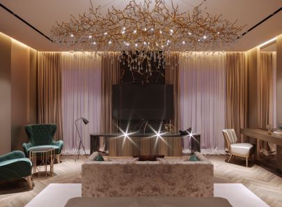 Второй свет позволяет включить в обстановку предметы и аксессуары, которые не подходят для стандартного помещения: массивную мебель, живые комнатные деревья, огромные зеркала, длинные многоярусные люстры, объемный оконный текстиль.