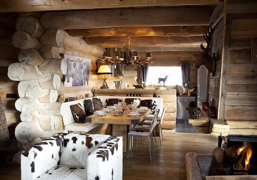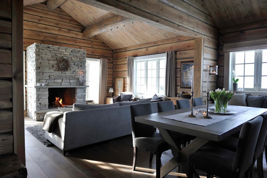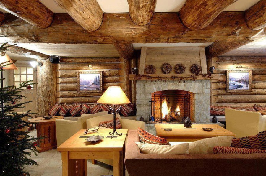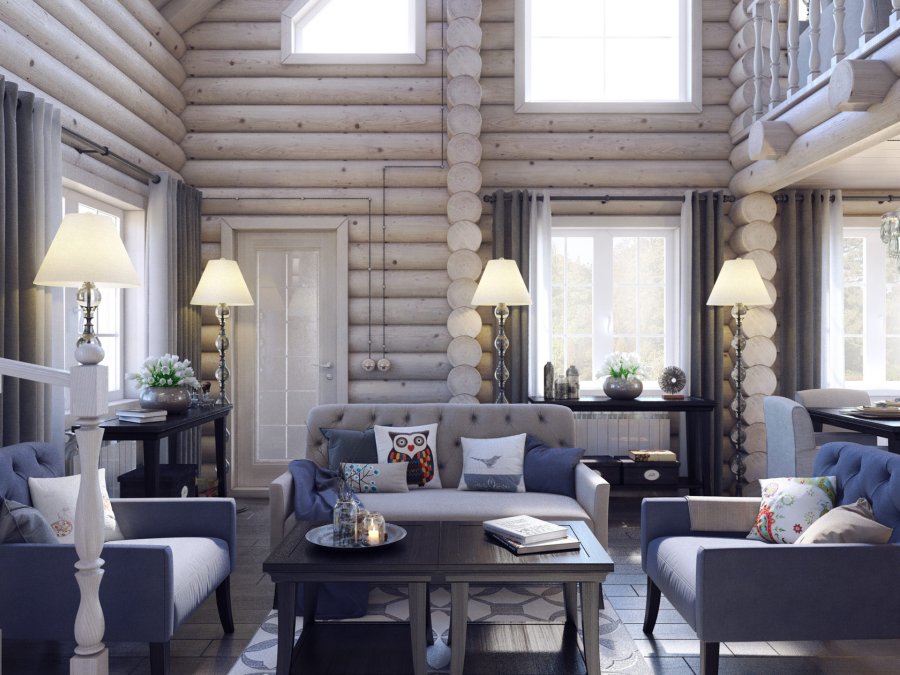Интерьеры загородных домов из бревна: фото в разных стилях