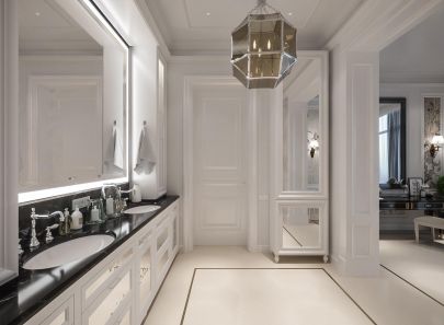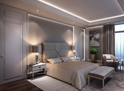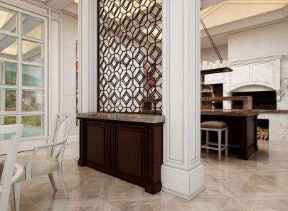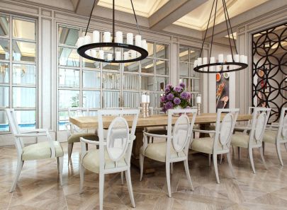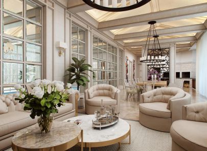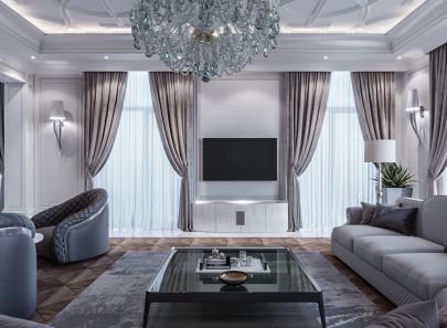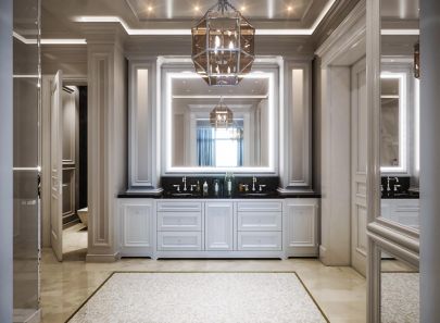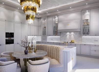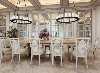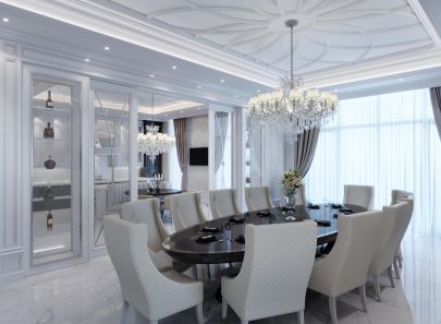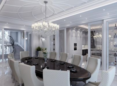 Четкость форм, единство цвета, концентрация у центра композиции – главные принципы, применяемые в данном проекте интерьера классического дома.