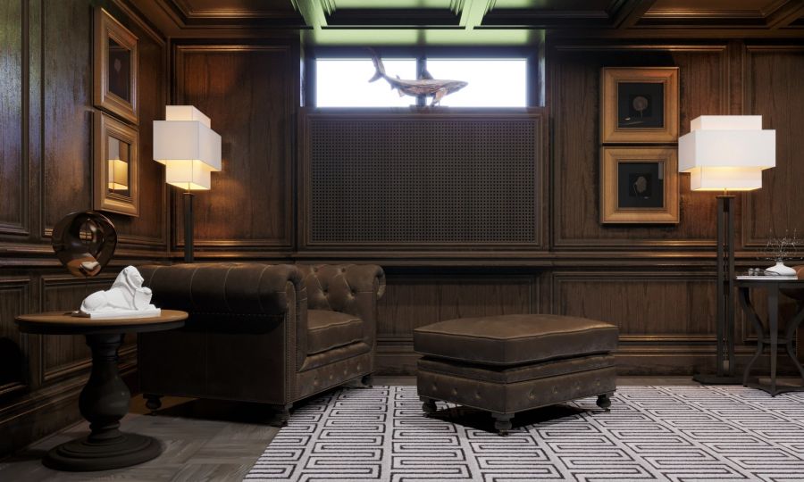 Невозможно раскуривать сигару на бегу — это целая церемония, ритуал, требующий особой атмосферы и обстановки. Оформление специального места для курения следует определённым правилам. Главная цель — создать комнату в стиле курительных лаунжей, свободную от шума и суеты будней.
