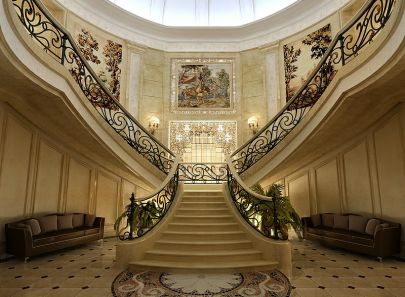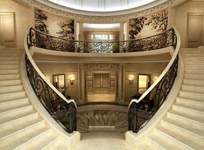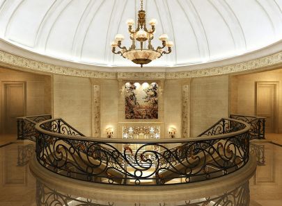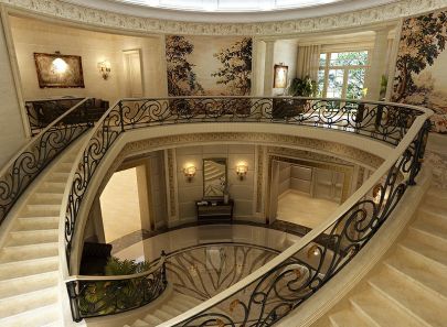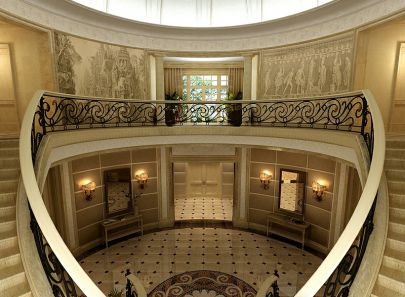 Элитные интерьеры дома – по главной лестнице с оркестром