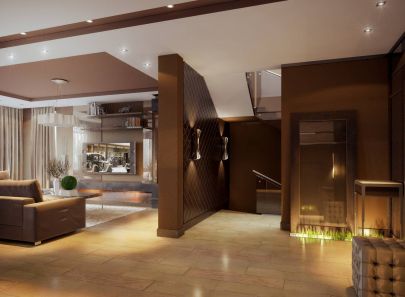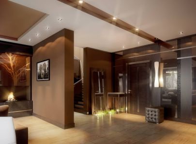 Выразительные коричневые, бежевые оттенки стали основой дизайна таунхауса в минималистском стиле. Интерьер строится на сочетании прямолинейных форм, больших окрашенных площадей и отделки деревом, зеркалами, фактурными панелями.