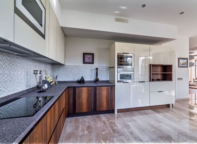 Приобрел эффектное сочетание черной кожи и дерева теплого песочного оттенка.