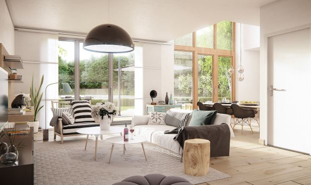 Хороший выбор для сторонников минималистичной домашней обстановки с простой, практичной, но элегантной отделкой. Главный материал – натуральное дерево светлых оттенков. Гладкие поверхности сочетаются со строгими линиями. В скандинавском варианте интерьера загородного дома создается спокойная атмосфера единения с природой.