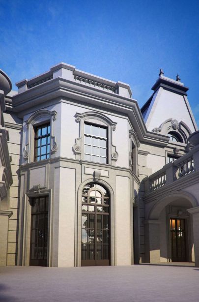 В его облике заметны детали, позаимствованные у эпох барокко, классицизма и викторианской Англии, поэтому образ получился богатым на декор и, вместе с тем, довольно утонченным.
