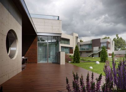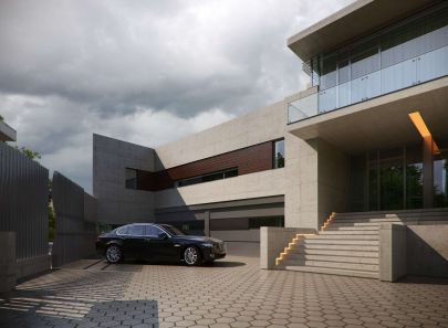 Особенностью современного экстерьера дома является его П-образная организация, за счет чего образуется внутренний двор. Это обеспечивает приватность и уединенность его жильцов, а также по-новому обыгрывает доступное для жизни пространство.