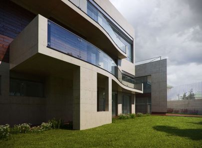 Во внешнем оформлении очень удачно контрастирует легкое стекло и сплошной массивный бетон – именно так и выглядит передовая архитектура.